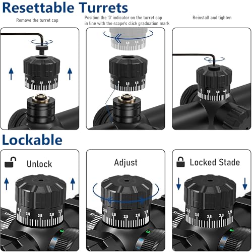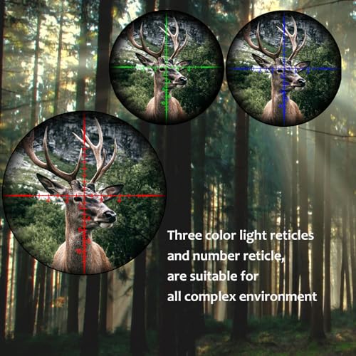 Illuminated Type of the Riflescope: 3 Intensity (Red) and 3 Intensity (Green) and 3 Intensity (Blue) It can be changed quickly and easily according to the brightness needs of different scenarios.Reticle etched on the glass of the scope provides excellent backing support for complex reticle design and offers great durability and accuracy.