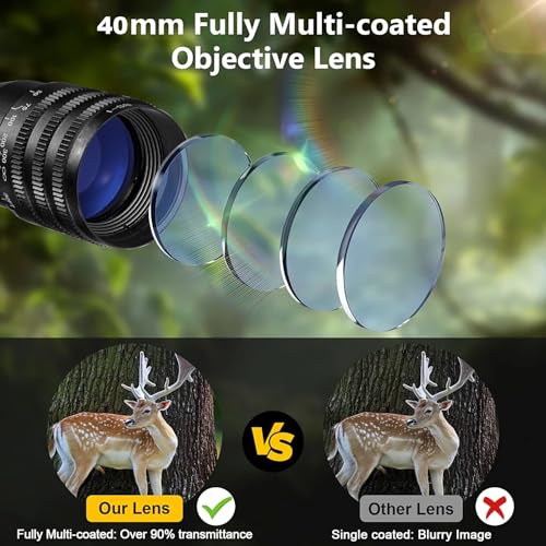 High Quality Made Gun Scope:The scope body made of aviation-grade aluminum alloy, more impact resistant durable and light.The rifle scope equip with free rail mount and sunshade,nice for hunting,the O-ring sealing and nitrogen filled reticle ensures outstanding water-proof and fog-proof performance.