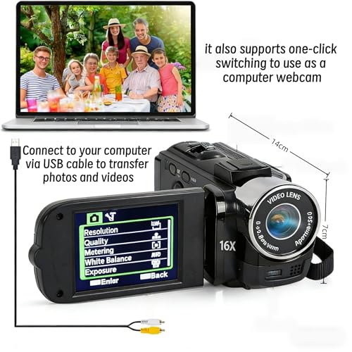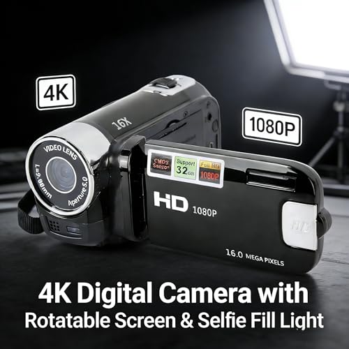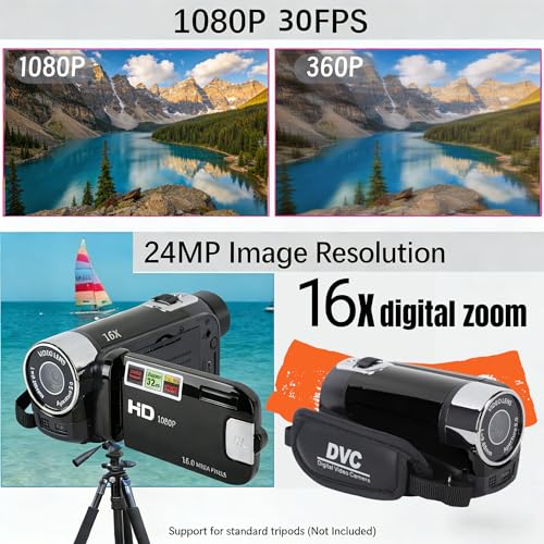 1080P HD Camcorder, 16MP DV Camera with 16x Digital Zoom, 2.7in TFT Rotatable Screen, Built-in Speakers, USB (Black)