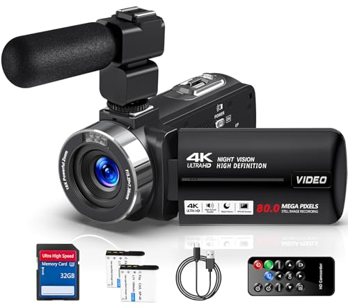 4K Video Camera Camcorder 80MP 18X Digital Zoom IR Night Vision Vlogging Camera, 3.0 Inch Screen YouTube Camera with 32GB SD Card, Microphone, Remote Control and 2 Batteries