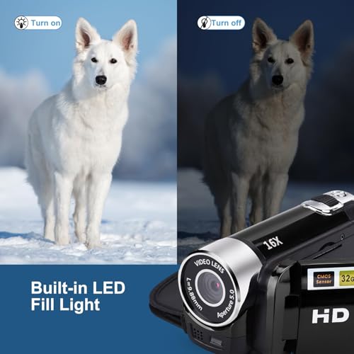 📷【LED Fill Light】Video camera with a built in Fill Light,which helps to illuminate dark environments and allows for timed captures(2 seconds 10 seconds),ensuring you can feature yourself in your photos perfectly.video camera for vlogging.