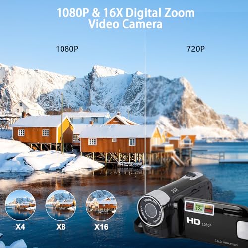 Bathgate Camcorder Video Camera,1080P 16MP mini Dv Camcorder,2.7in TFT Screen 16X Digital Video Camera with Fill Light and USB Cable(Black)