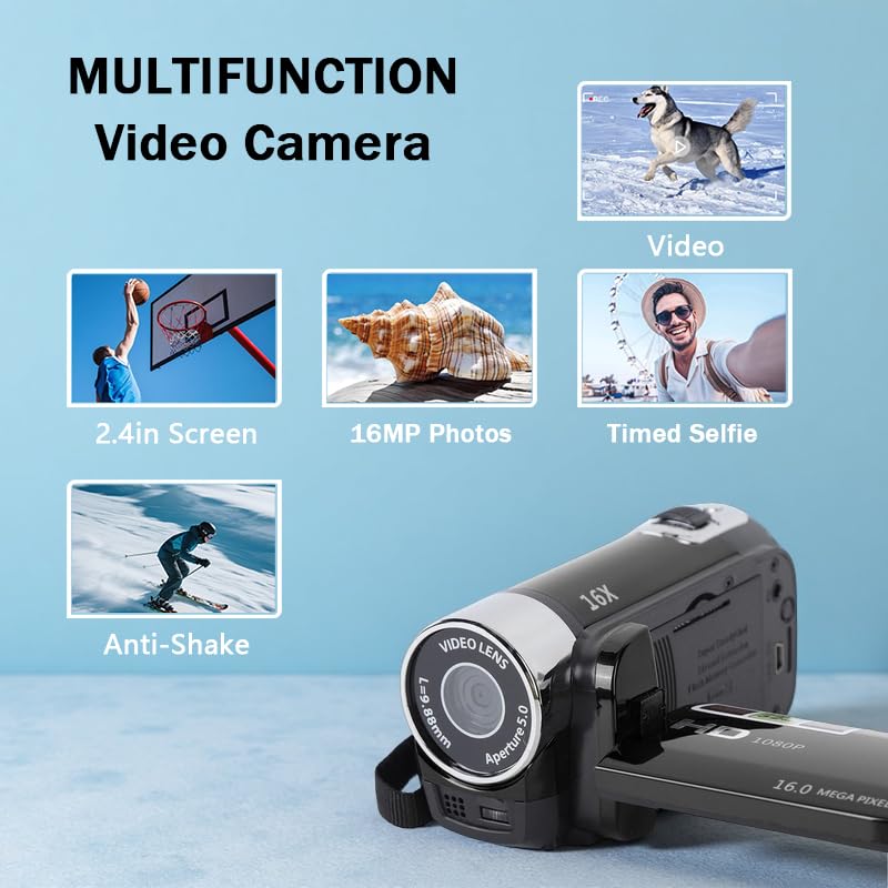 📷【HD 1080P Video Camera】This zoom recorder featuring 2.7 inch 270-degree Rotation TFT LCD screen,Video Camera max supports 1080P Video Resolution,16x digital zoom,clear picture quality is enough for your daily photography camera needs.