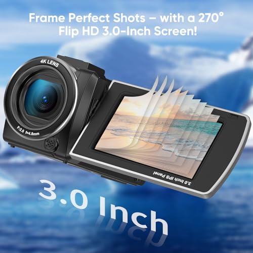 ORDRO Camcorder 4K, 64MP Vlogging Camera with 18X Digital Zoom, LED Fill light, 3.0 Inch Screen, IR Night Vision, Vlogging Camera for YouTube with Tripod and Two Batteries