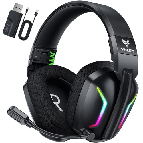 WESEARY Wireless Gaming Headset for PS5, PC, PS4, Switch & Mac, Dual-Mode 2.4GHz & Bluetooth Headset with ENC Noise Cancelling Microphone, 50mm Stereo Drivers,Dynamic LED Lights,Up to 50Hr Playtime