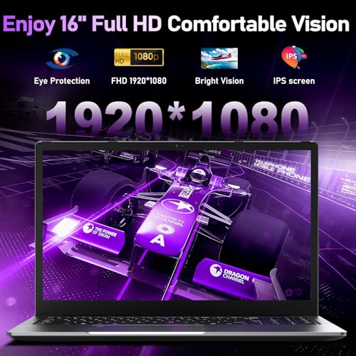 【16 inch Full HD Screen】CHIFUYOU laptop is equipped with a 16-inch Full HD screen with a resolution of 1920 × 1080. With a 16:9 golden ratio and 4mm ultra-thin bezels, it has a 90% screen-to-body ratio. Equipped with IPS technology with wide viewing angle, it delivers highly detailed images and immersive viewing experience, ideal for multimedia entertainment, gaming, video editing and content creation. In addition, a 1 megapixel HD camera is built in at the top of the screen, allowing you to start video calls with friends and family at any time.
