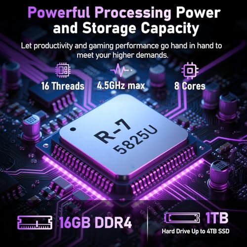 【Powerful Performance, Smooth Experience】This laptop features 16GB DDR4 memory for faster system operation and responsiveness. It also features a 1TB M.2 2280 solid-state drive, which provides ample storage space for system files and large games. Dual channel design supports up to 64GB memory expansion. Equipped with an R-7 5825U processor with speeds of up to 4.5GHz, it effortlessly handles multitasking and the most demanding graphics processing. Whether you use it for work or for fun, enjoy incredibly fast performance.