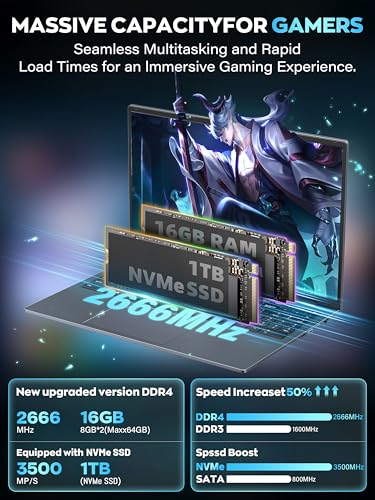 【Lightning-Fast Performance with Ample Storage】 Features 16GB DDR4 RAM and a 1TB NVMe SSD with read speeds up to 3500MB/s. The NVMe SSD uses a PCIe interface, which is around 30% faster than traditional M.2 SATA SSDs. From booting up to loading files and running multiple tasks, everything is smooth and responsive
