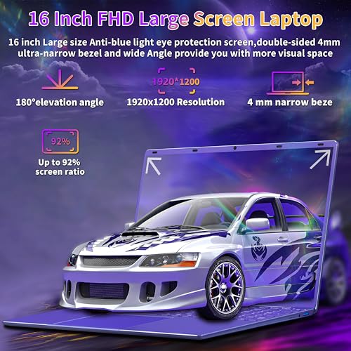 【16″ Immersive Visuals & Stylish Design】The 16-inch laptop features a 4mm thin-bezel display (up to 92% screen ratio) with a 16:10 aspect ratio, providing users with an immersive look and feel during the viewing, gaming or creative design process.The 1920×1200 resolution with high pixel density makes images sharper, with more three-dimensional details and fuller colors. Weighing only 1.7 kg and 1.5CM thin, this laptop’s extreme thin and light appearance is ideal for mobile work and entertainment. The 180° flat hinge and mini stand on the back make it easy to share content or collaborate with friends