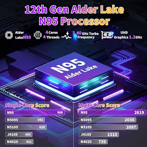 【Next-Gen Performance with N95 Quad-Core Processor】 Experience exceptional speed and stability with the advanced 12th-generation N95 quad-core processor. Its powerful multi-core design outperforms entry-level models like the N5030 and N5095. Combined with integrated graphics up to 1.2GHz, it delivers smooth visuals for gaming, design, and video editing. Supporting 2K/60Hz output, it provides high-quality display performance with reliable long-term operation, ideal for work, study, and entertainment