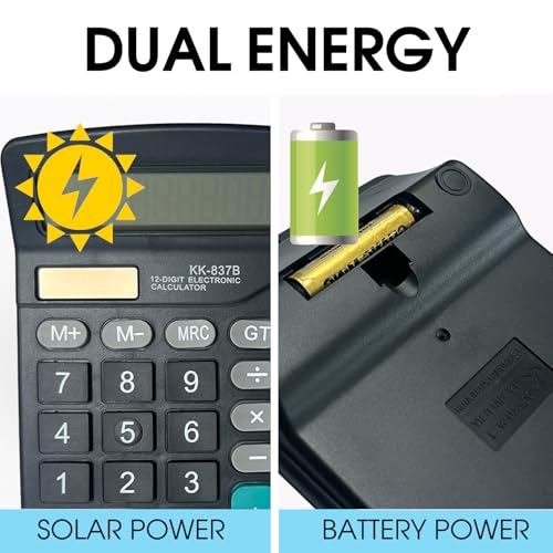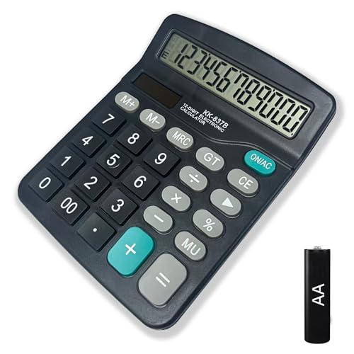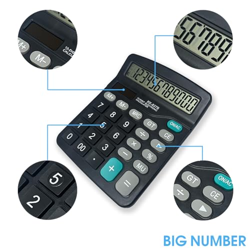 Electronic Calculator 12 Digit Large Display, Solar Battery LCD Display Office Calculator with AA Battery Included