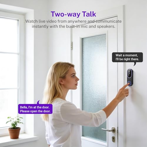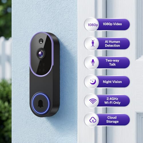 1080p Wireless Doorbell Camera with Receiver, Smart AI Human Detection, Two Way Talk, Live View, Night Vision, 2.4G WiFi Only, Cloud Storage, Indoor Outdoor Surveillance