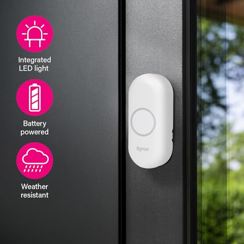 Byron Wireless Doorbell Set – Multi-Colour Visual Alert – Mute Function – 200m Range – 16 melodies – Portable – DBY-23564BS