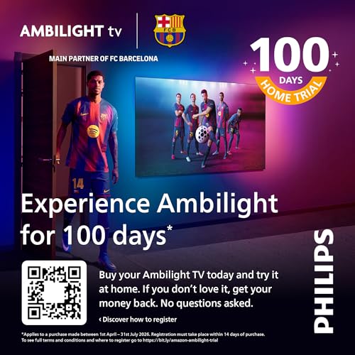 AMBILIGHT TV: The only TVs with integrated LED lights on the back that react to what you watch, immersing you in a halo of colourful light. It changes everything: your TV seems bigger, and you’ll be drawn deeper into your favourite entertainment